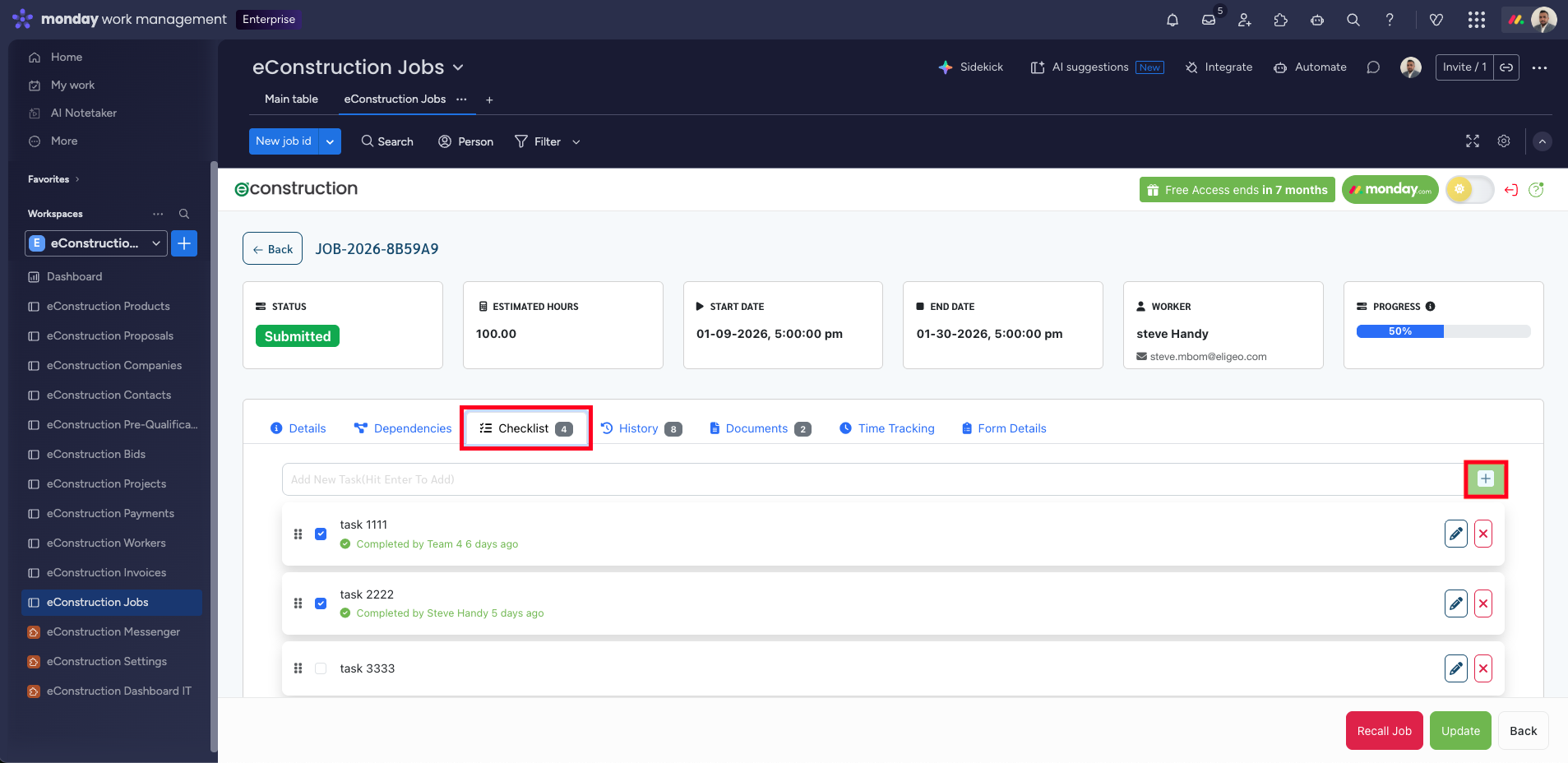 How to Add a Checklist of Tasks to a Job