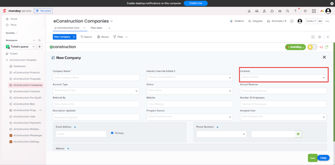 - To link an individual to this company, add them in the "Contacts" field (See this Article).