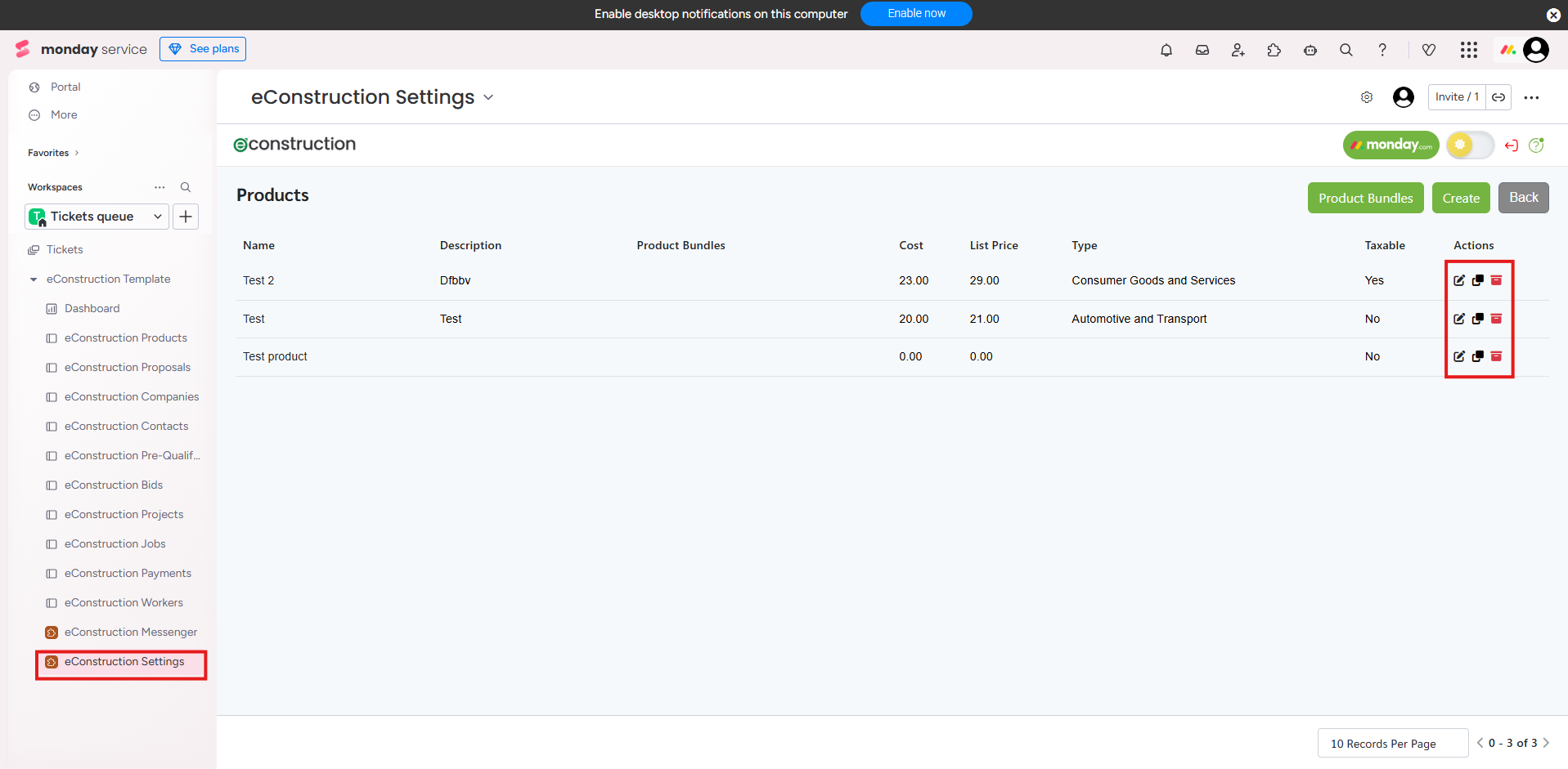- To edit or delete existing products, use the Actions icons (pencil/trash) on the Products list page.