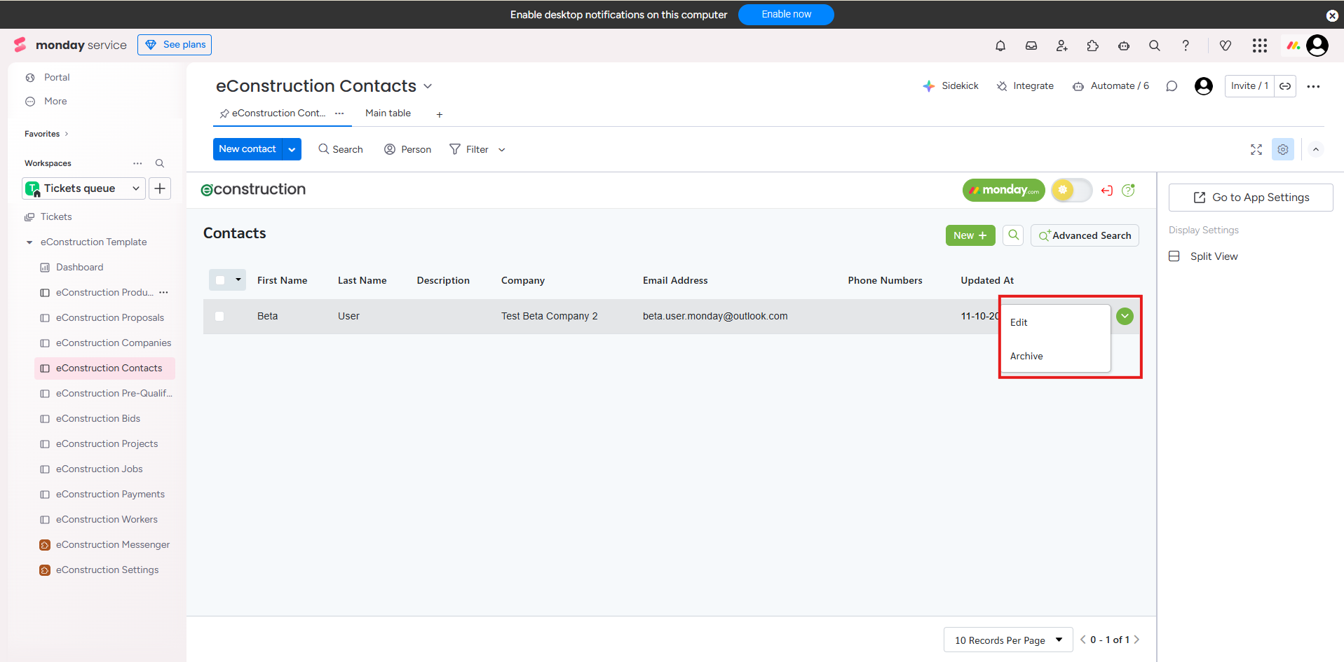 How to Archive a Contact If a contact is no longer active, you can archive them. Navigate to the Contacts module. Find the contact in the list. Click the green arrow icon on the far right of the contact's row. Select Archive from the dropdown menu.