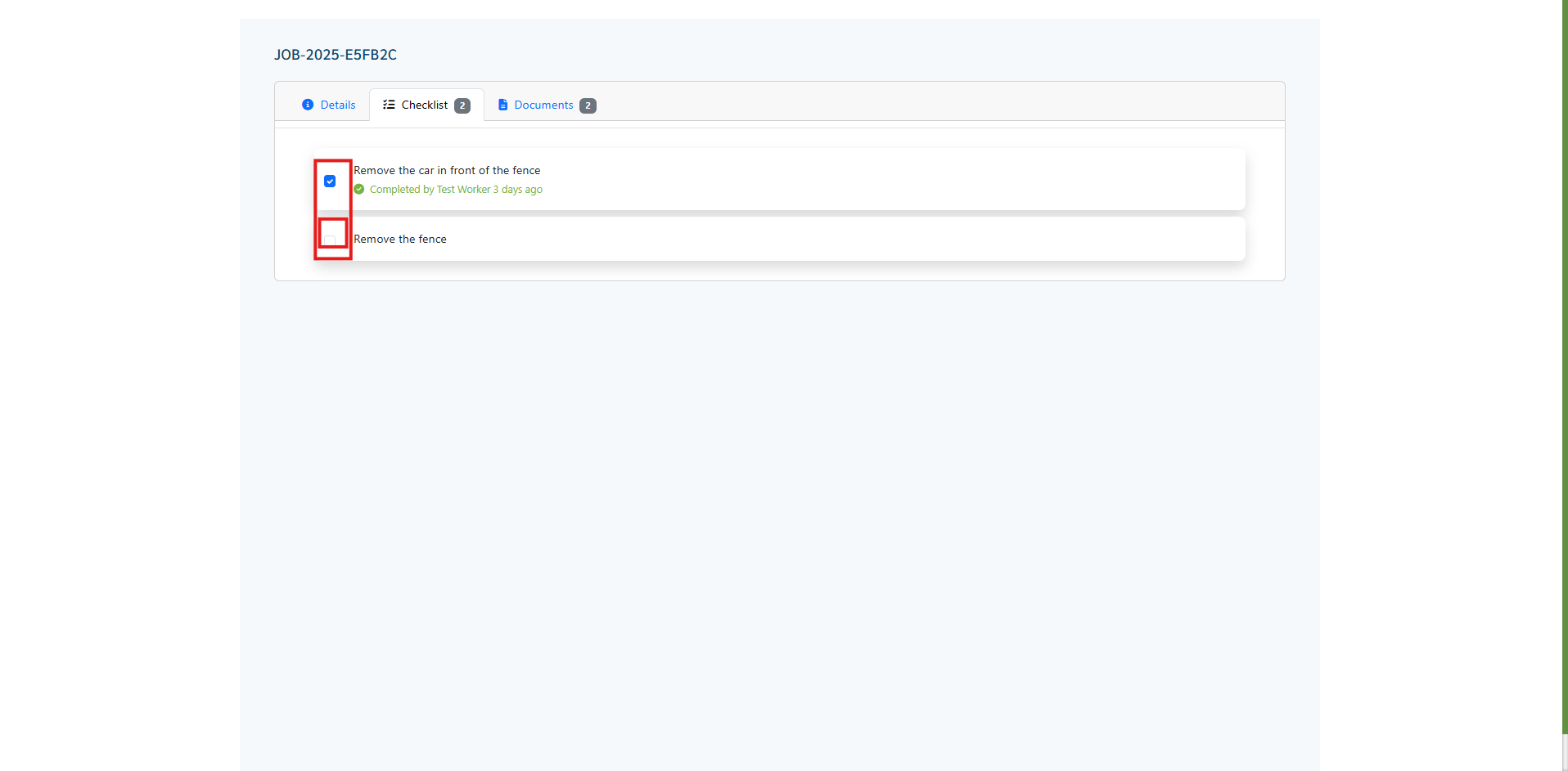 - In the Checklist tab, review the list of tasks (e.g., "Remove the fence") .