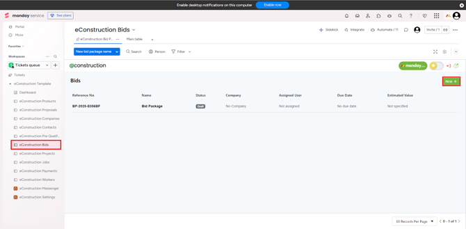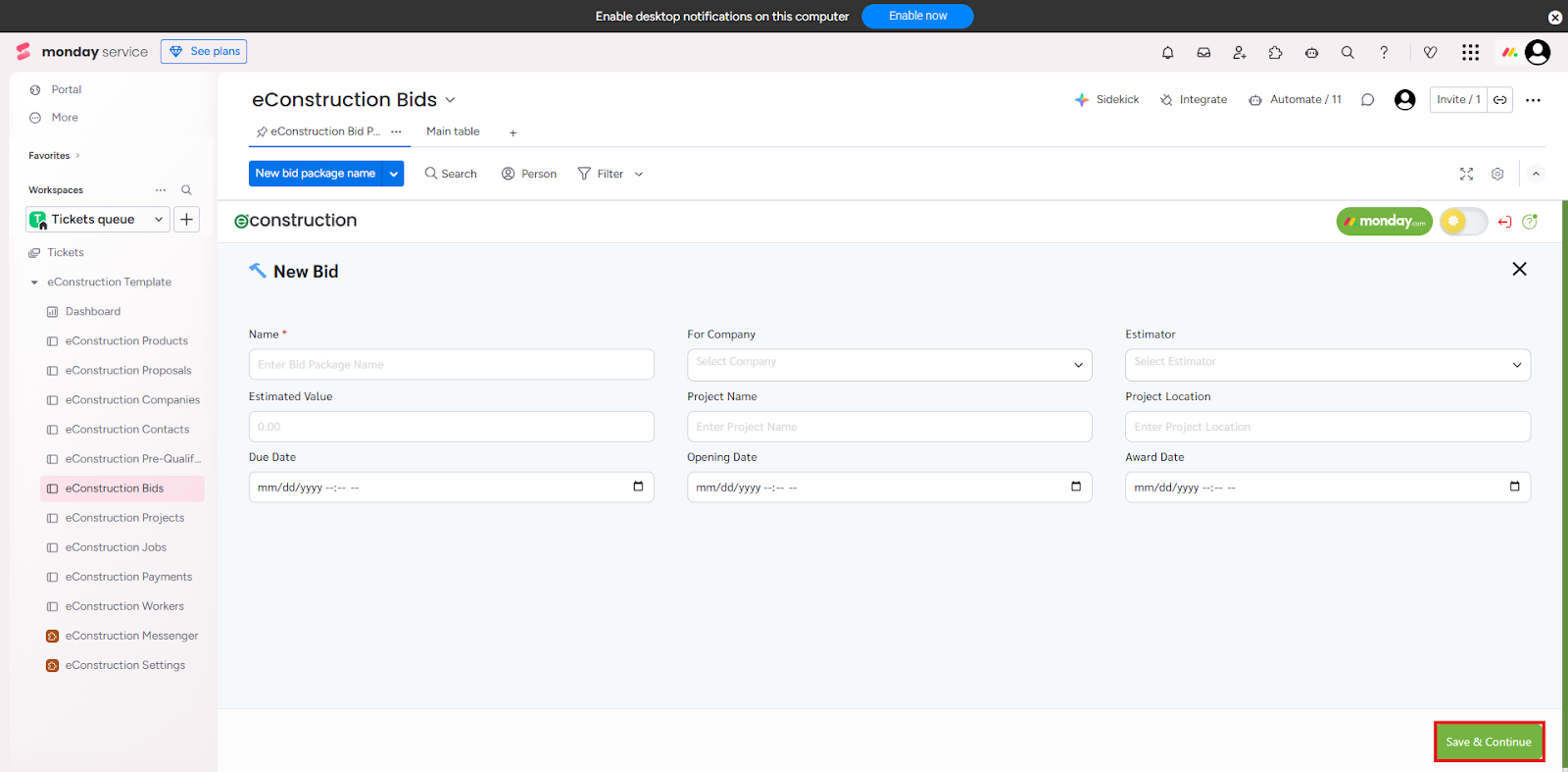 - Click Save & Continue. This will create the bid package and take you to its detail page.