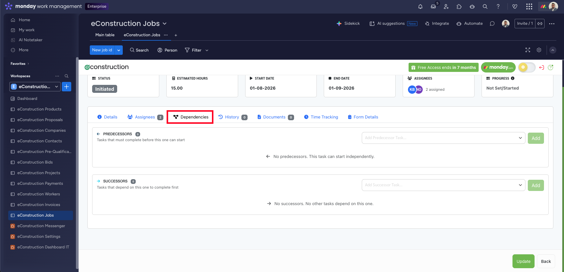 - Once added, the current job status will show as Blocked until the predecessor is complete.