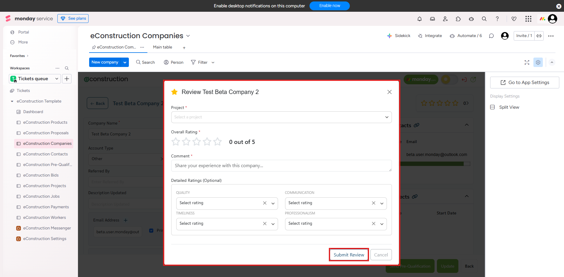 - You can add Detailed Ratings for Quality, Communication, Timeliness, and Professionalism using the dropdowns .