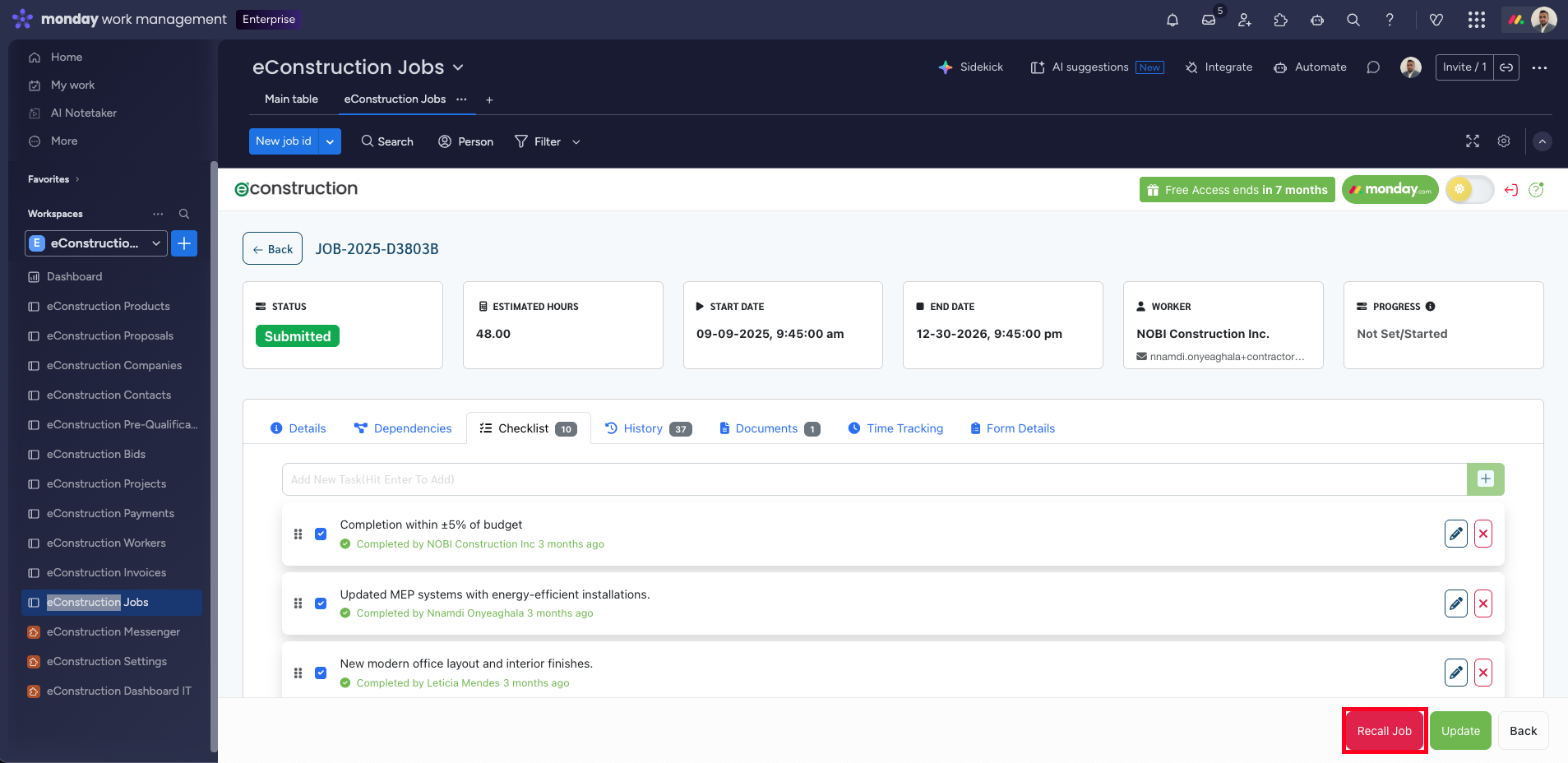 If you have sent a job by mistake or need to make significant changes, you can recall it.