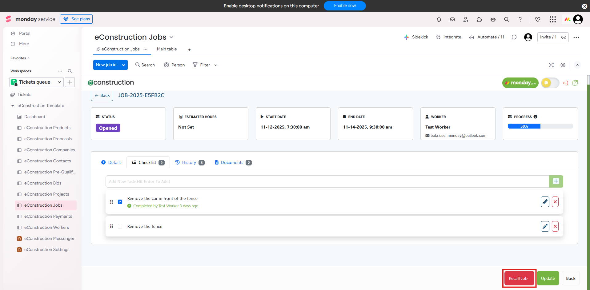 How to Recall a Job If you have sent a job by mistake or need to make significant changes, you can recall it. Open the detail page for the job you want to recall. At the bottom right, click the Recall Job button.