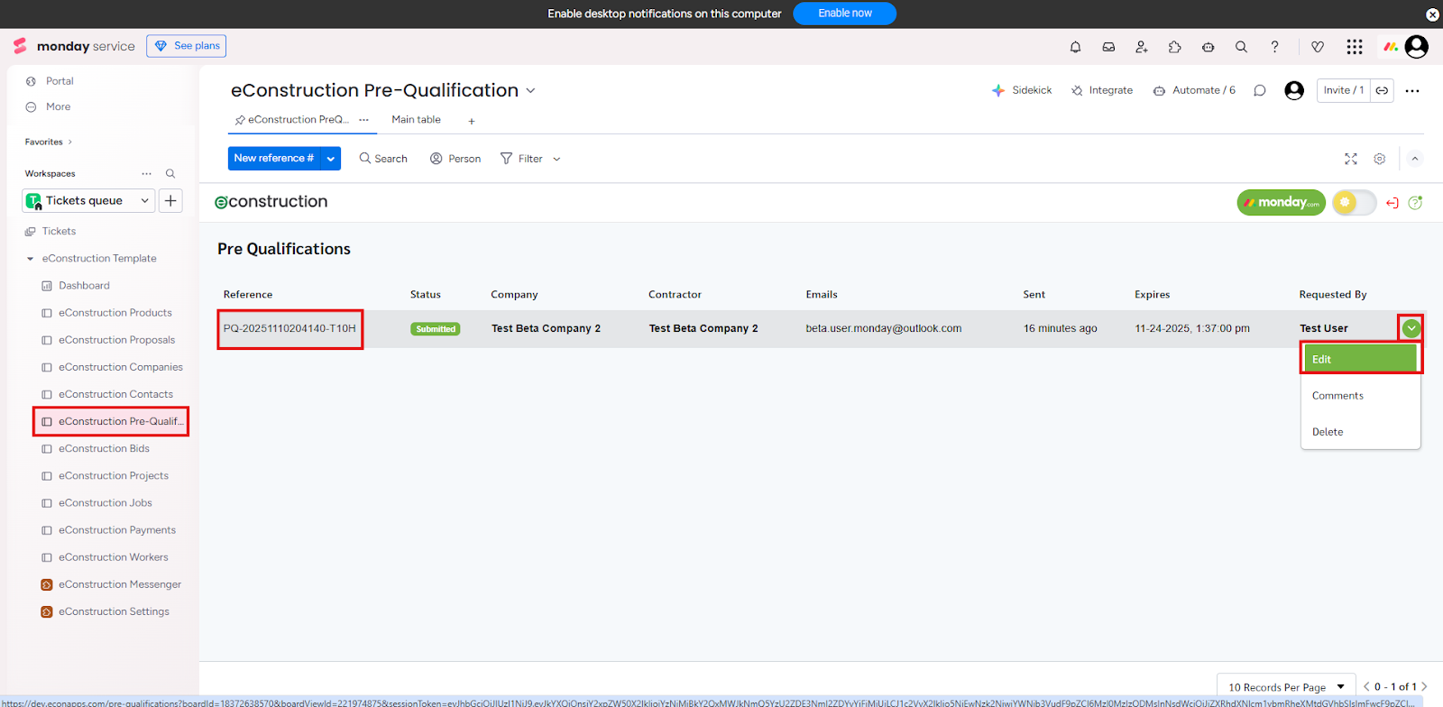 - The pre-qualification detail page will open. You can review all the information the subcontractor entered and see their uploaded files under Document Management .