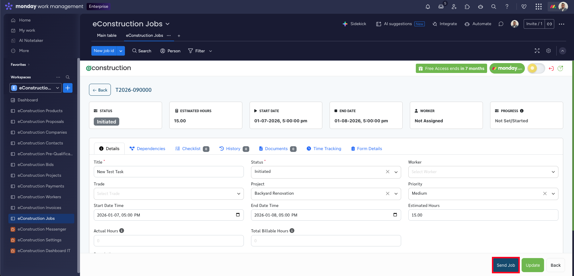 Once your job details and checklist are complete, you must send the job to the worker.