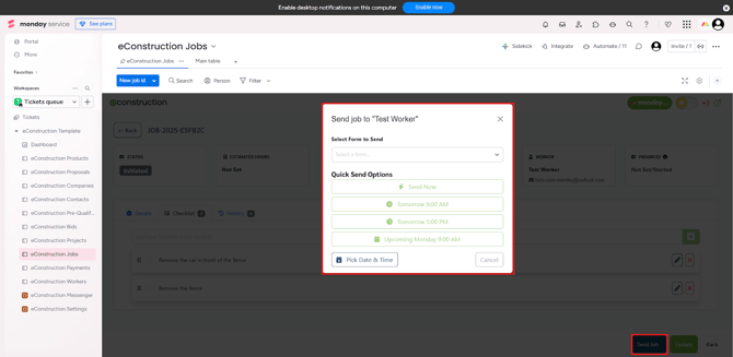 NOnce your job details and checklist are complete, you must send the job to the worker.