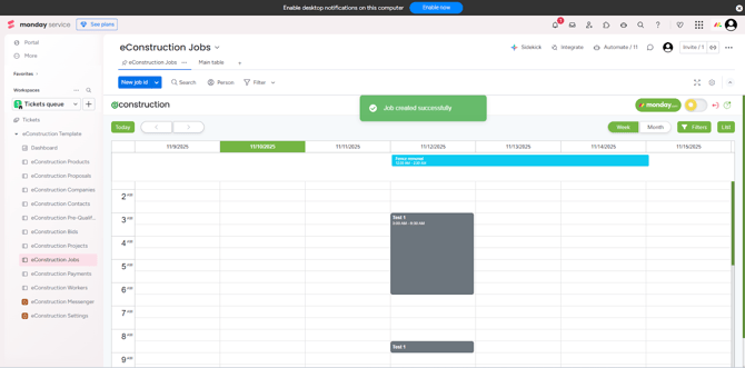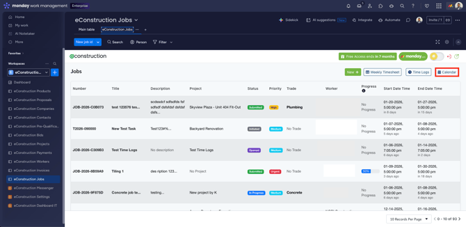 - The view will switch from a list to a calendar, plotting all jobs or tasks based on their Start and End Dates/Times .