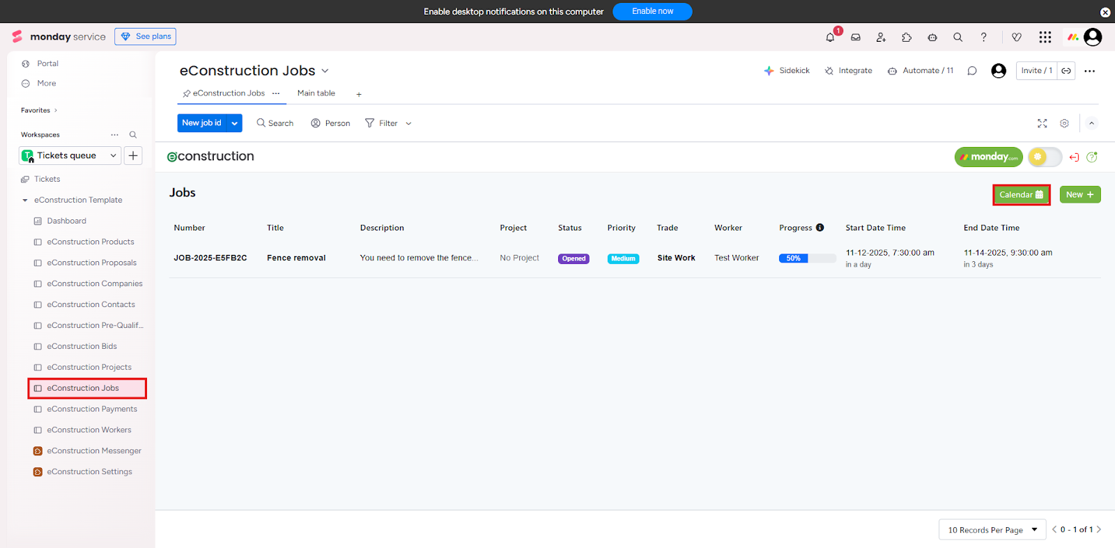 - The view will switch from a list to a calendar, plotting all jobs based on their Start and End Dates/Times .