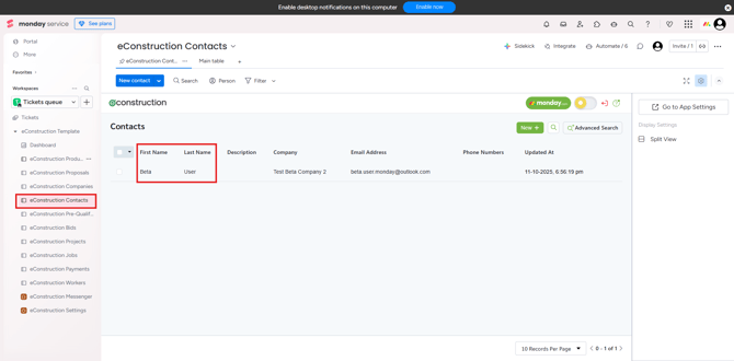 - Click on any Contact Name in the list to open their detail page.
