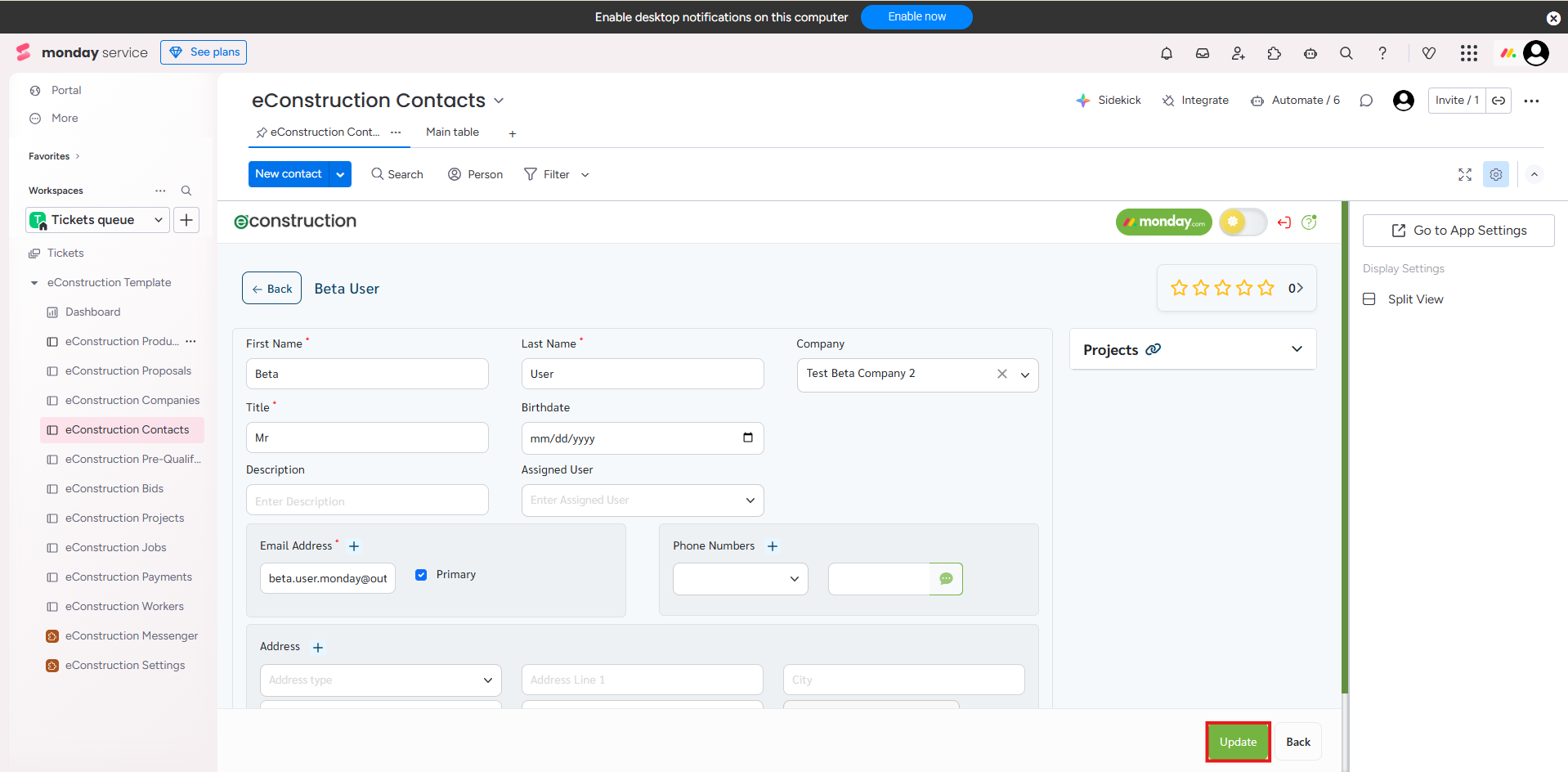 - You can edit any information (like Title, Birthdate, or Phone Numbers) by clicking directly into the fields.